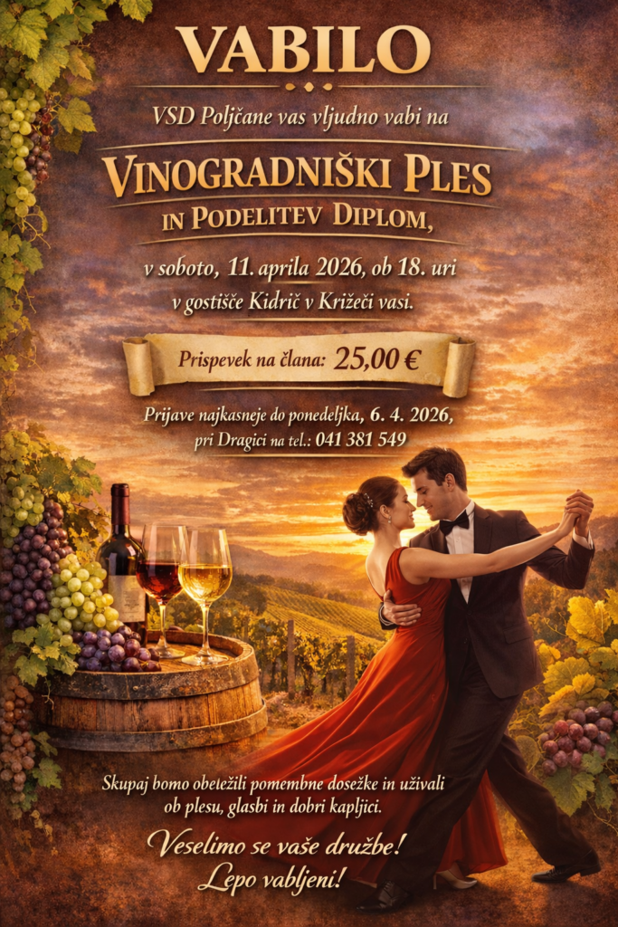 Vinogradniško društvo vabi vse člane in ljubitelje vina na društveno ocenjevanje vin letnika 2025.